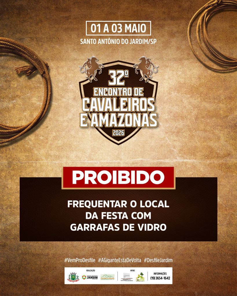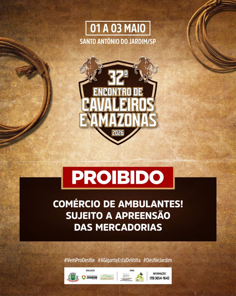 Atenção! Fiquem atentos aos avisos e alertas do 32º Encontro de Cavaleiros e Amazonas de Santo Antônio do Jardim.