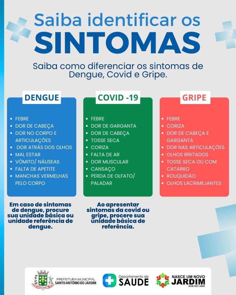 Tanto a Dengue quanto a Covid-19 e a Gripe apresentam sintomas semelhantes, incluindo febre, dor no corpo, perda de apetite e alterações no paladar. No entanto, há diferenças importantes entre as 3 doenças, saiba como diferenciar os sintomas:
