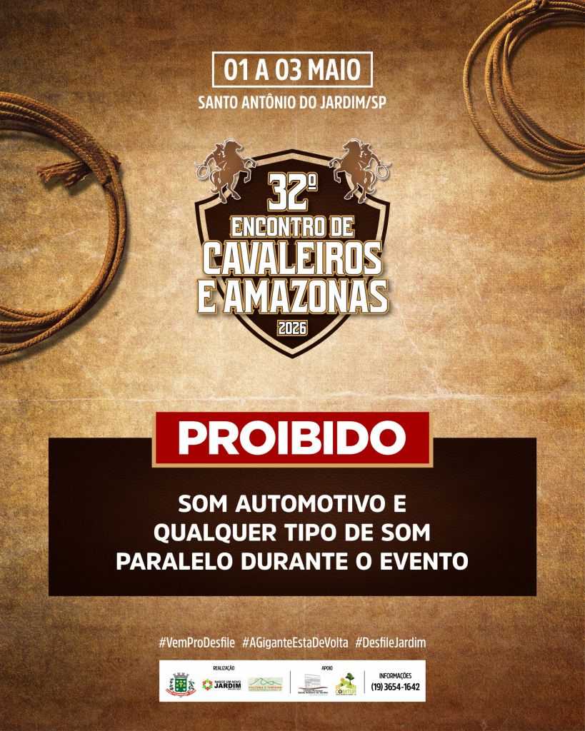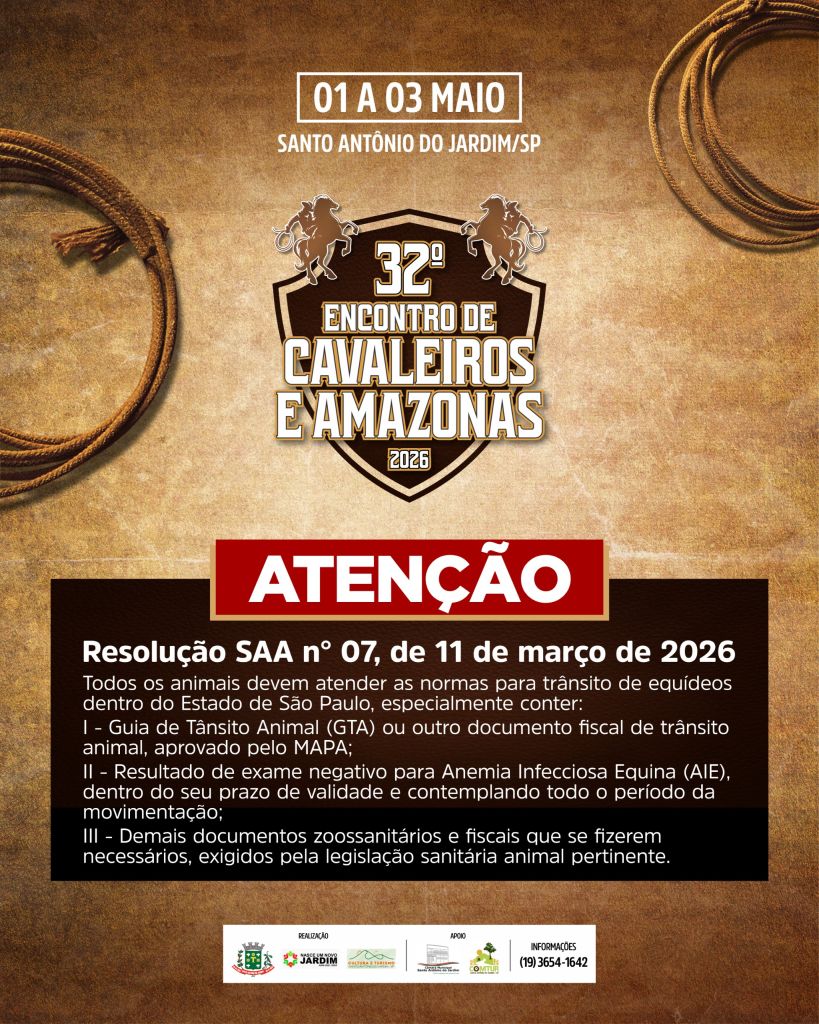 Atenção! Fiquem atentos aos avisos e alertas do 32º Encontro de Cavaleiros e Amazonas de Santo Antônio do Jardim.
